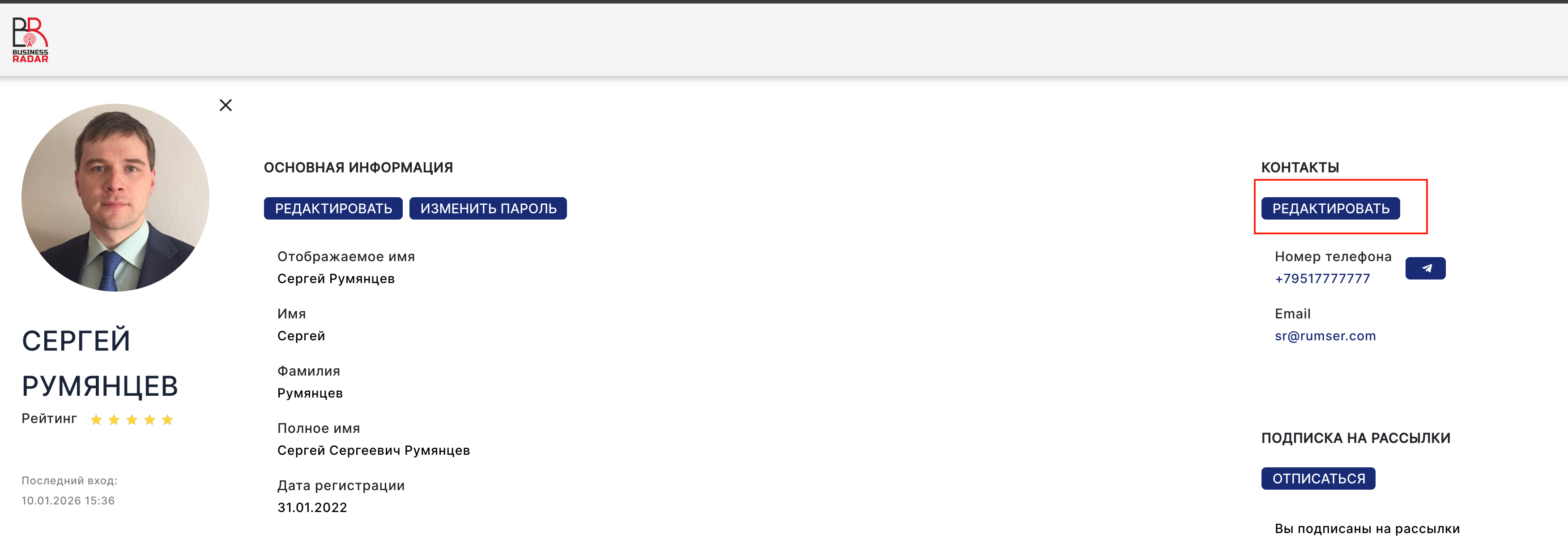 - Нажмите Редактировать контакты и введите номер телефона, на который вы хотите получать уведомления в Телеграмм